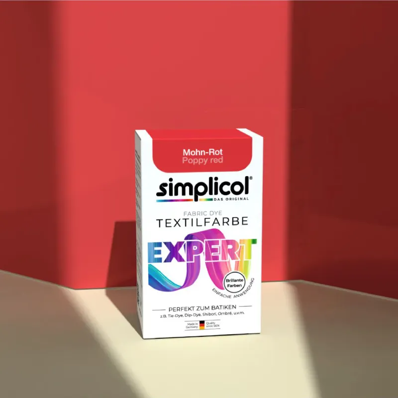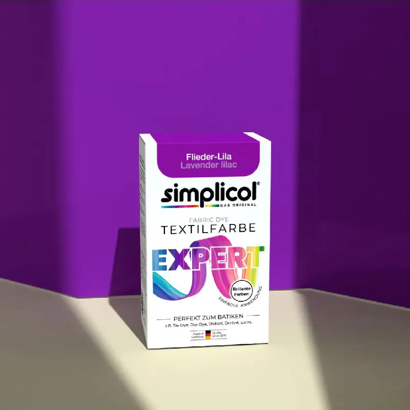 Creativitate fără limite pentru hainele tale. Simplicol Expert este vopseaua ideală pentru proiecte DIY, tehnici de tip Batik (Tie-Dye) și revigorarea materialelor delicate precum lâna și mătasea. Poate fi utilizată în mașina de spălat, la lighean sau în oală, oferind culori vibrante la 60°C. Este soluția perfectă pentru personalizarea articolelor vestimentare și a decorațiunilor interioare. Alege dintr-o gamă largă de nuanțe și exprimă-ți stilul!